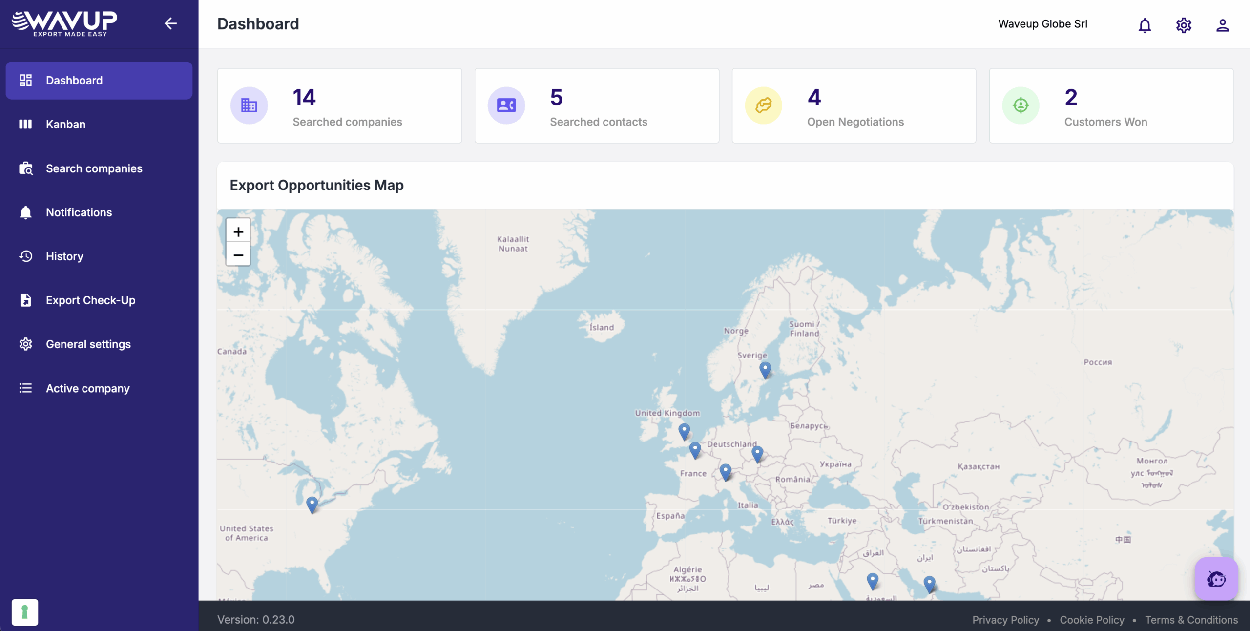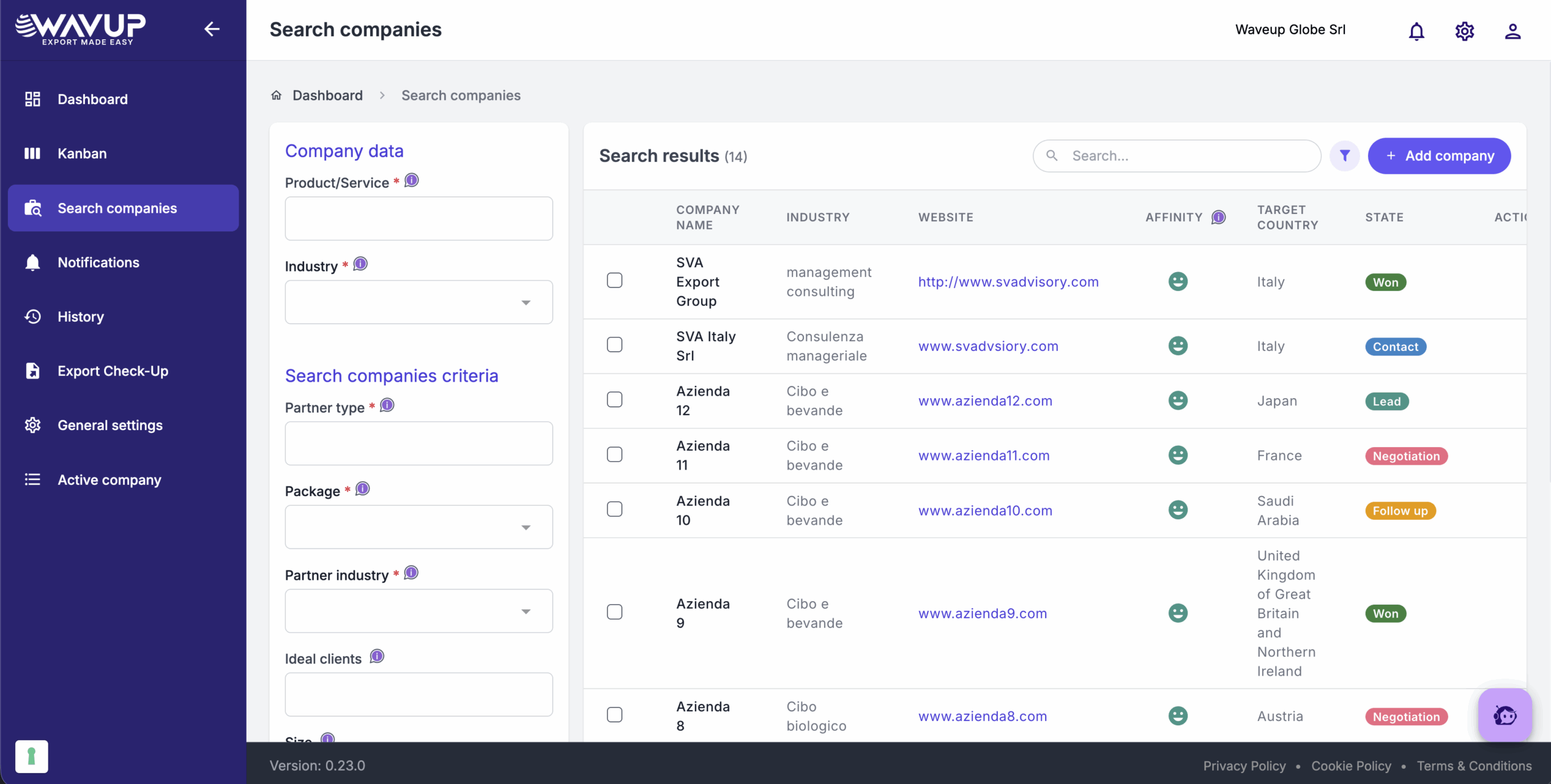 An AI agent by your side, from the analysis to your first contract. Wavup is the first SaaS platform for digital export, designed specifically for Italian SMEs. With WAVUP you can: