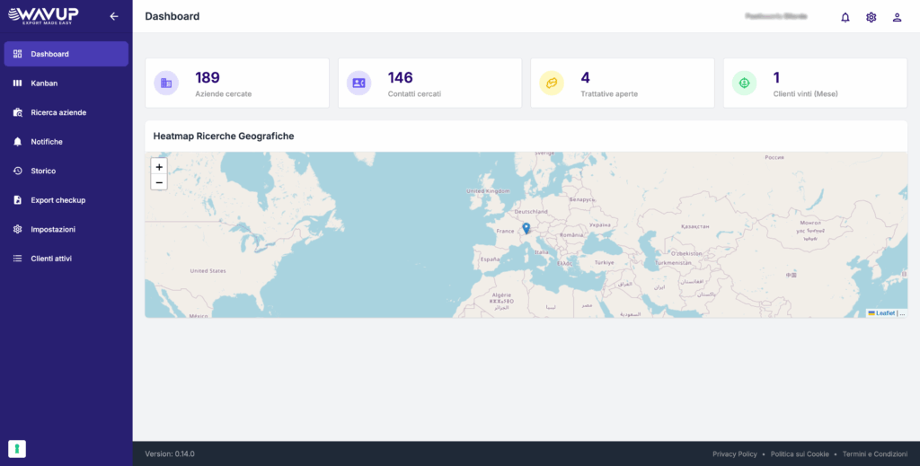 Un’interfaccia visuale strutturata per la gestione delle trattative export, con tracciamento avanzato delle performance e automazione della fase di contatto.